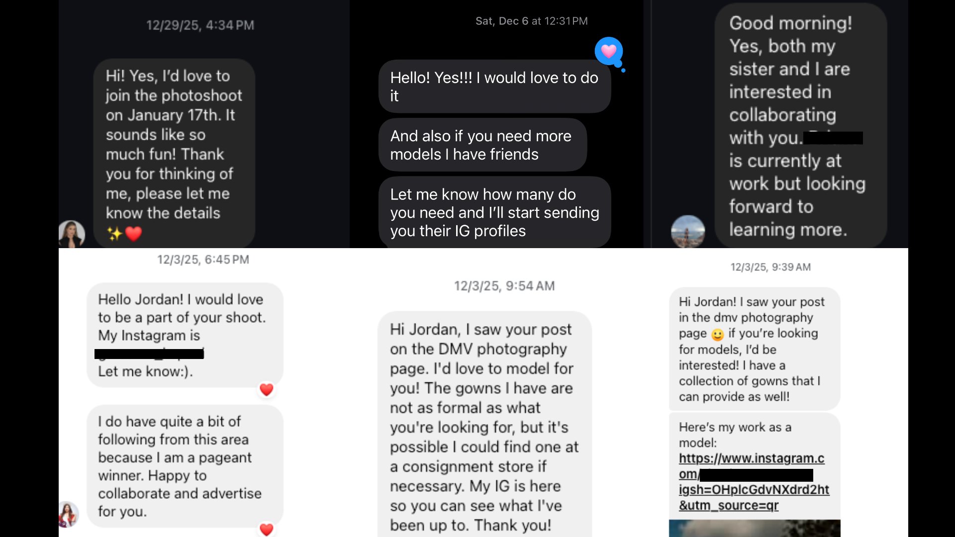 Real messages from people who wanted to shoot — without paid ads, scripts, or a big following: