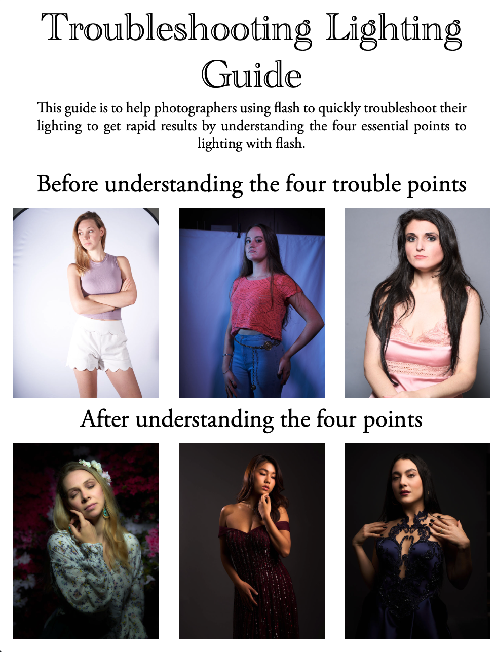 This guide is about fixing, not setting up. It shows you how to diagnose common flash issues and correct them by adjusting: